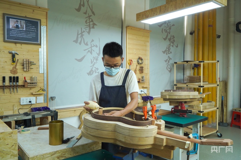 央广网荆州8月29日消息(记者邓子依)是什么让一把定价近6万元的手工吉他一琴难求?又是什么让一个老工业基地崛起年产值近十亿元的文化产业新生态?答案就藏在松滋市文化创新产业园的每一把吉他里。