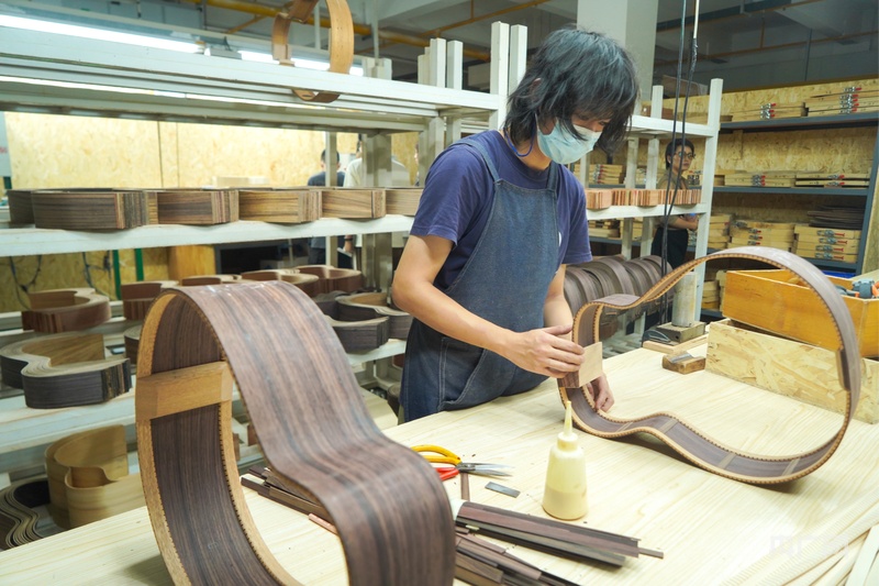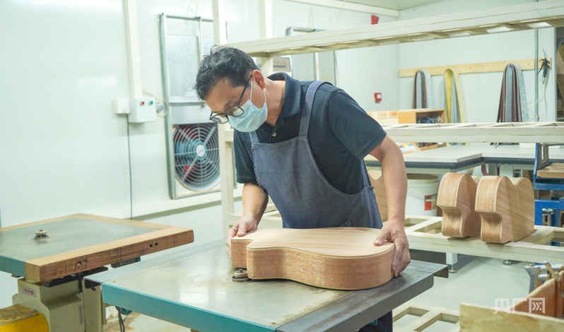 “做吉他不是做木工,声音才是灵魂。”汪锋华轻拨一把刚完工的吉他,浑厚而富有层次的声音回荡在整个车间。“声音的控制必须依赖手工,要用手去感知木材的强度、硬度和发声特性,才能确保琴音精度。”