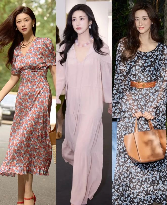 碎花裙个人感觉,自带度假氛围!尤其是宽松款式的碎花裙!朱珠很喜欢碎花裙,她的成熟气质和大骨架,让她能驾驭各种风格的碎花裙。