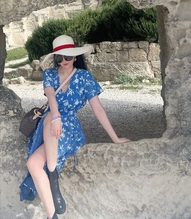 女人如花,碎花裙也可以选择短款,作为碎花裙的爱好者,刘亦菲在选款上,也很注意露肤度,比如蓝色碎花裙,搭配了米白色的遮阳帽,风情万种的感觉就出来了。