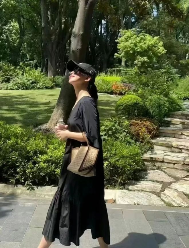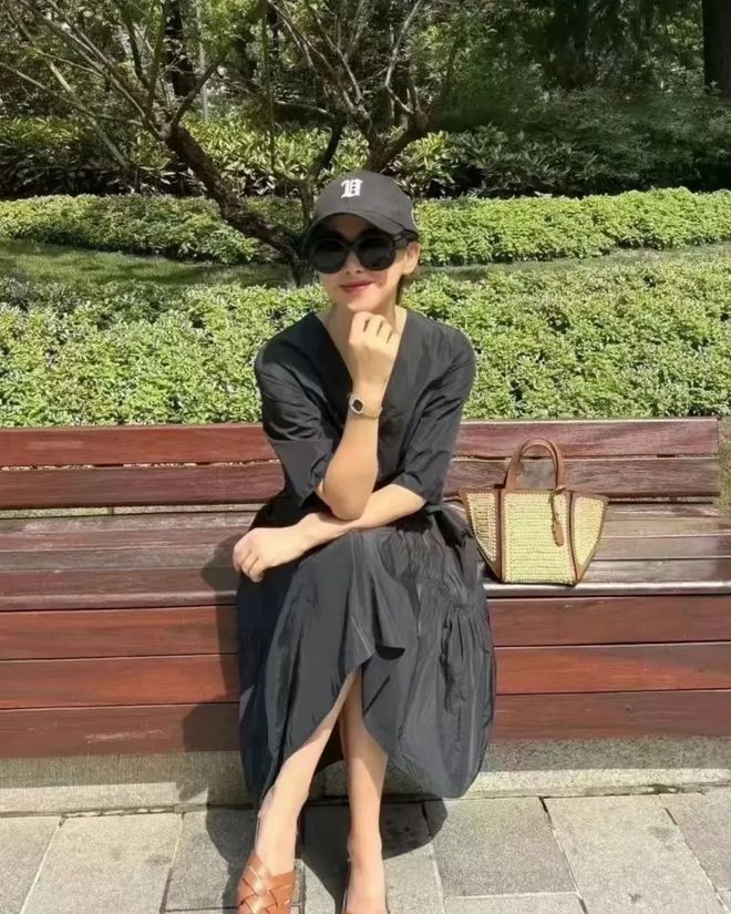 生活中的朱珠,私服穿搭尽显松弛感,和《精英律师》中的紧绷的造型大不同!她更喜欢宽松的款式,比如黑色V领的宽松连衣裙,搭配一双编织款凉鞋,裙装没有突出身材曲线,鞋子也没有选择高跟鞋,但就能让人感受到,她的松弛自在!